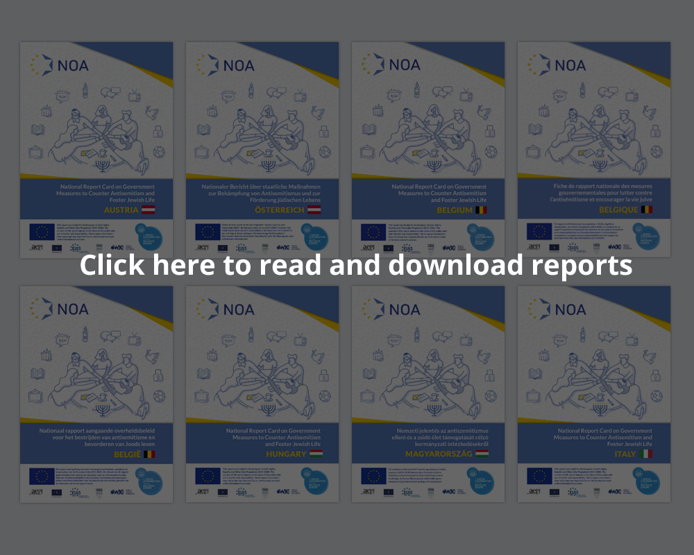 NOA’s flagship activity is the development of National Report Cards, which provide a nuanced holistic snapshot of EU Member States’ policies to combat antisemitism and foster Jewish life. They serve as substantial resources and benchmarking tools, helping Member States to develop and implement national action plans to combat antisemitism and foster Jewish life.